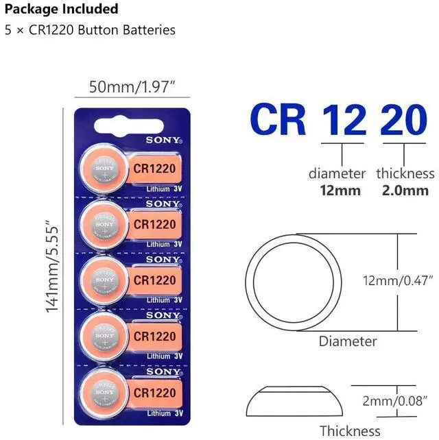• 2020 5Pcs 3v CR1220 Lithim Li-ion Battery DL1220 BR1220 ECR1220 LM1220 KCR1220 L04 5012LC Button Coin Cell Bateria Replace