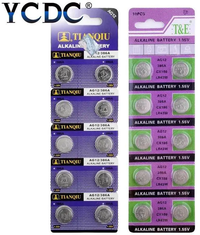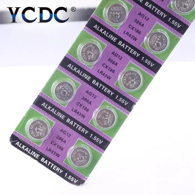 • 10pcs/pack AG12 LR43 386 Button Batteries SR43 186 SR1142 LR1142 Cell Coin Alkaline Battery 1.55V V12GA For Watch Toys Remote