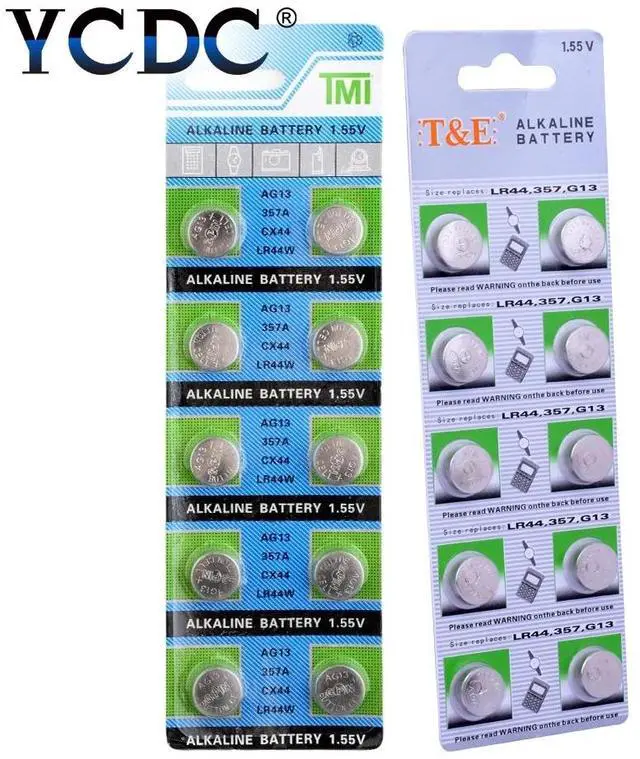 • 10pcs AG13 1.5V LR44 L1154 RW82 RW42 SR1154 SP76 A76 357A pila lr44 SR44 AG 13 Alkaline Button Cell Coin Battery