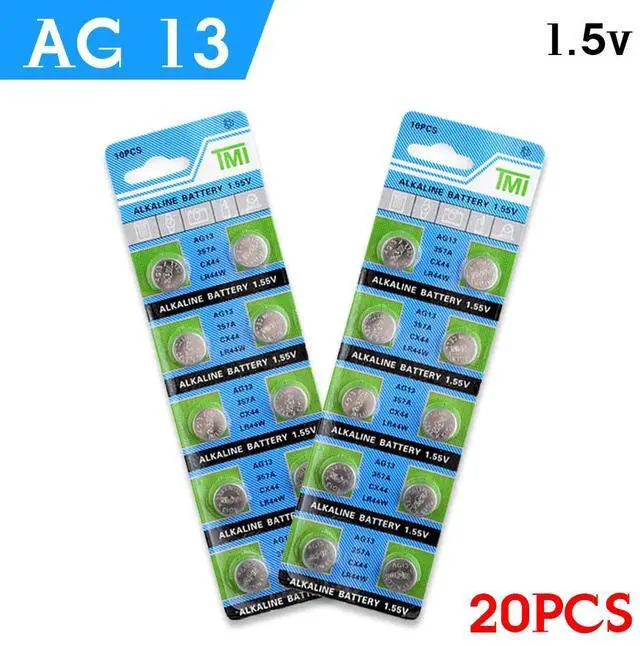 • AG13 Battery Cell Coin Battery 1.5V LR44 L1154 RW82 RW42 SR1154 SP76 A76 357A ag 13 pila lr44 SR44 AG 13 Alkaline Button 20PCS