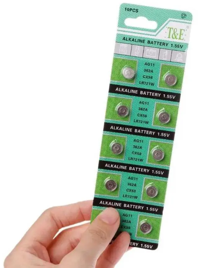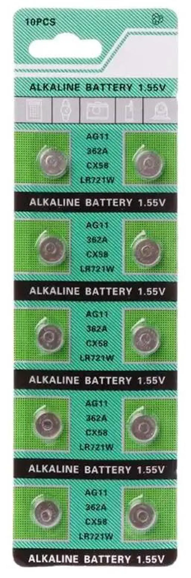 • 10PCS Alkaline Battery AG11 1.55V LR721 362 SR721 162 Button Coin Cell Watch Toys Batteries Control Remote H05A