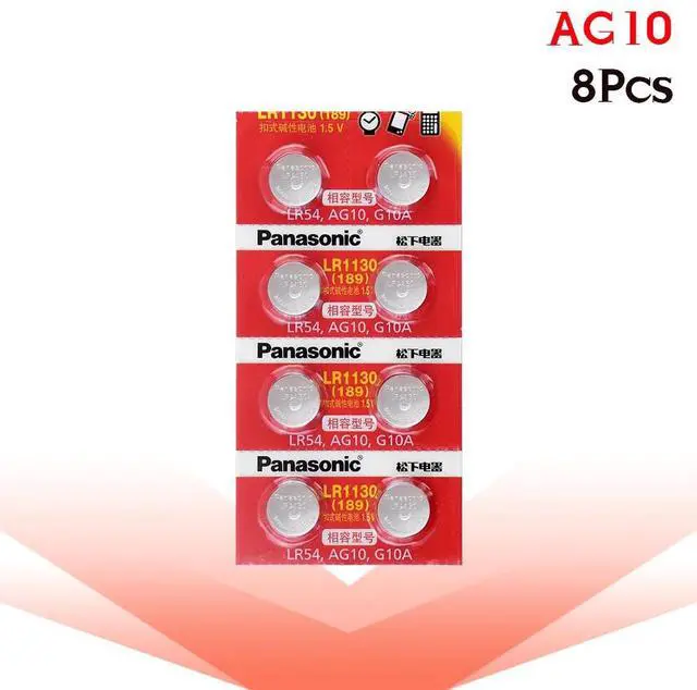 • AG10 Battery LR1130 LR54 Coin Button Cells 1.5V Alkaline D189 D389 D390 G10 G10A 1159SO 1168A 189 189-1 For Watch Toys 8Pcs