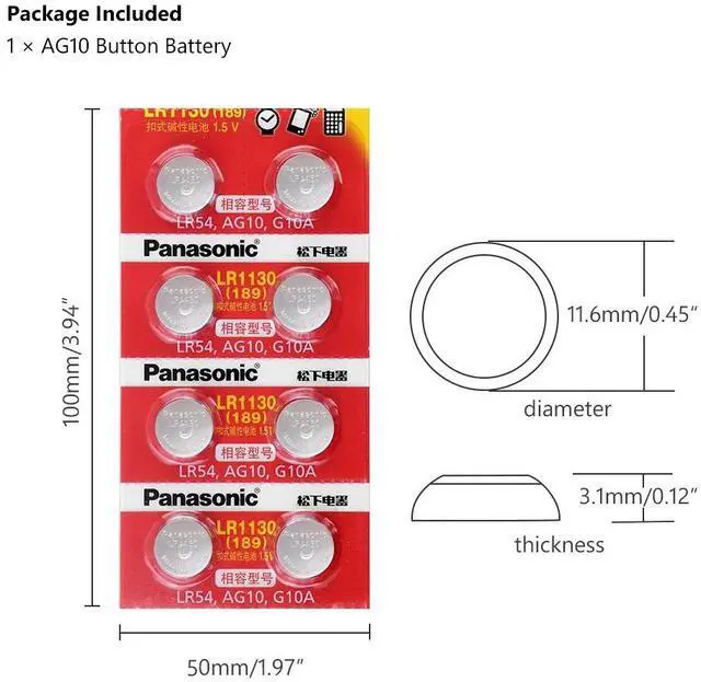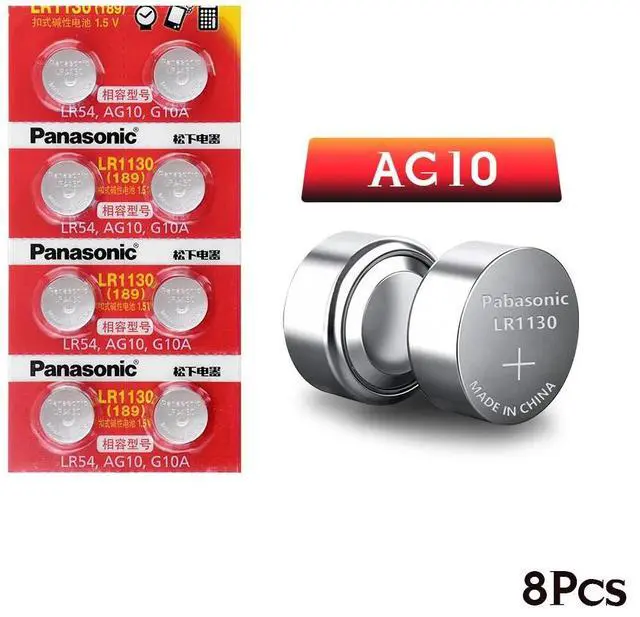 • 8Pcs AG10 AG 10 Battery LR1130 LR54 LR 1130 Coin Button Cells 1.5V Alkaline D189 D389 D390 G10 G10A 189 189-1 For Watch Toys