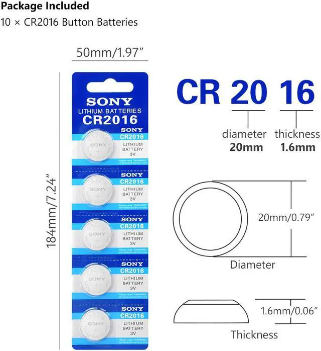 • 2020 10 Pcs For Sony CR 2016 3V Lithium Coin Cells Button Battery DL2016 KCR2016 CR2016 LM2016 BR2016 High Energy Density