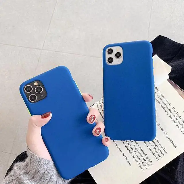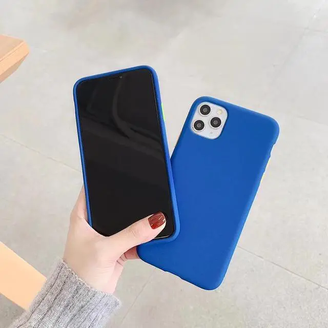 • Hot Silicone Solid Blue contrast color button soft phone case for iphone 7 8 plus 8plus 11 Pro X XS XR MAX high quality cover