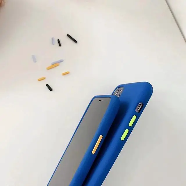 Hot Silicone Solid Blue contrast color button soft phone case for iphone 7 8 plus 8plus 11 Pro X XS XR MAX high quality cover