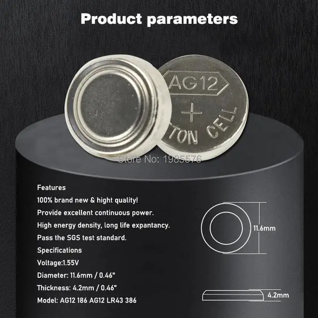 • 10pcs/pack AG12 LR43 386 Button Batteries SR43 186 SR1142 LR1142 Cell Coin Alkaline Battery 1.55V V12GA For Watch Toys Remote