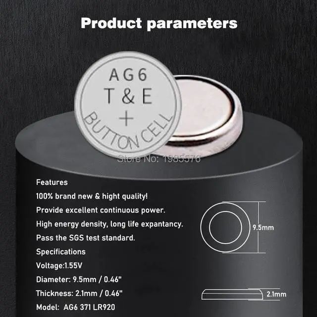 • 10pcs AG6 Alkaline Batteries SR290SW SR920SW V371 D371 LR920SW LR921 SG6 SR69 SB-AN 280-31 Button Coin Cell Battery
