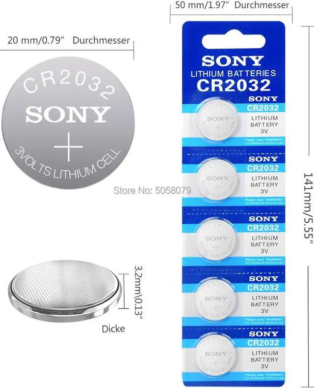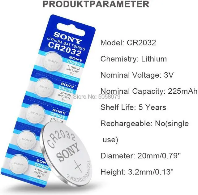 • 5pcs For SONY CR2032 Lithium Button Batteries DL2032 ECR2032 BR2032 Coin Cell Battery 3V CR 2032 For Watch Electronic Remote