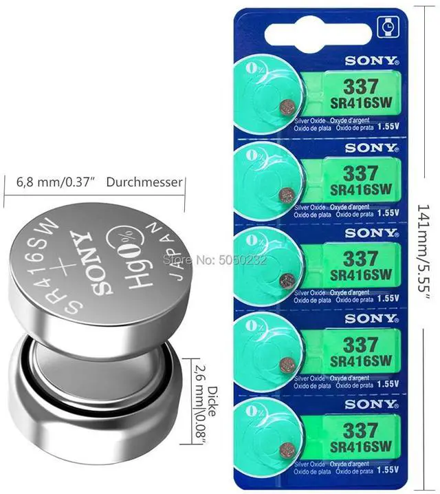 • 5pcs For Sony 337 SR416SW button cell batteries 1.55V coin Silver Oxide battery LR416 623 D337 V337 SP337 Watch Toy Batteries