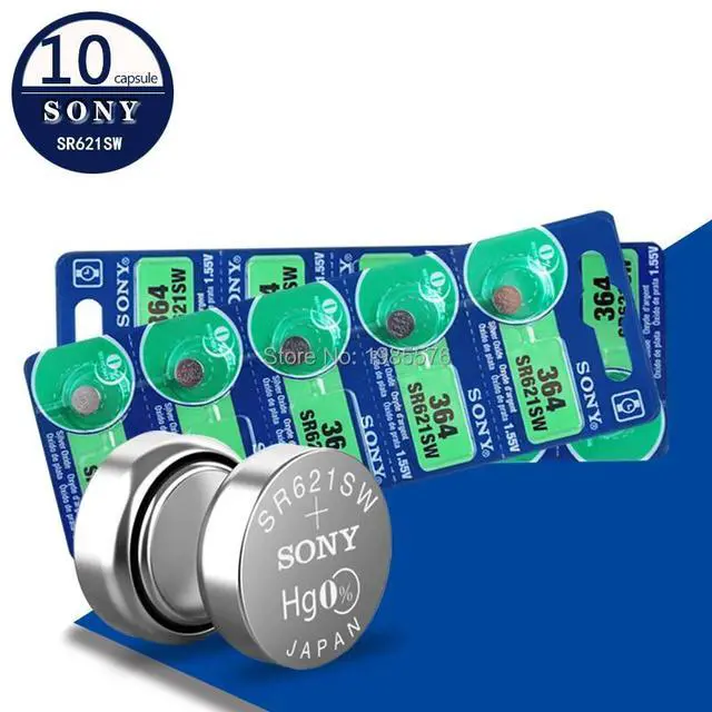 • 10pcs/lot For Sony 364 1.55V Silver Oxide Watch Battery 364 SR621SW V364 SR60 SR621 AG1 Button Coin Cell MADE IN JAPAN