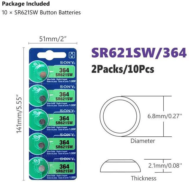 • 10pcs/lot For Sony 364 1.55V Silver Oxide Watch Battery 364 SR621SW V364 SR60 SR621 AG1 Button Coin Cell MADE IN JAPAN