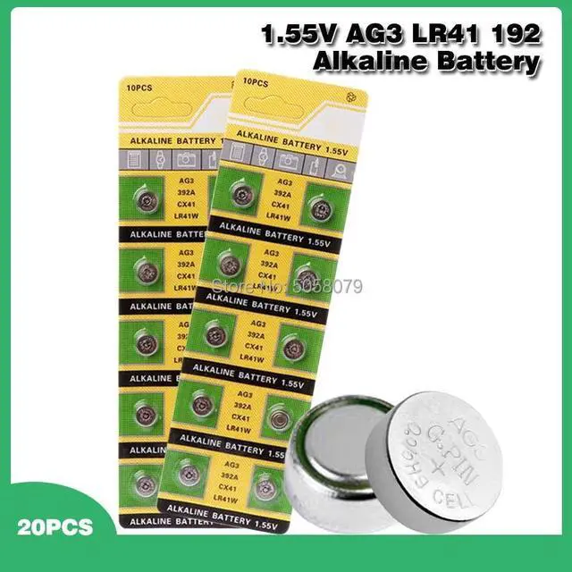 • 20PCS Cell Coin Alkaline Battery AG3 1.55V Button Batteries SR41 192 L736 384 SR41SW CX41 LR41 392 Lamp Chain Finger Light Watch