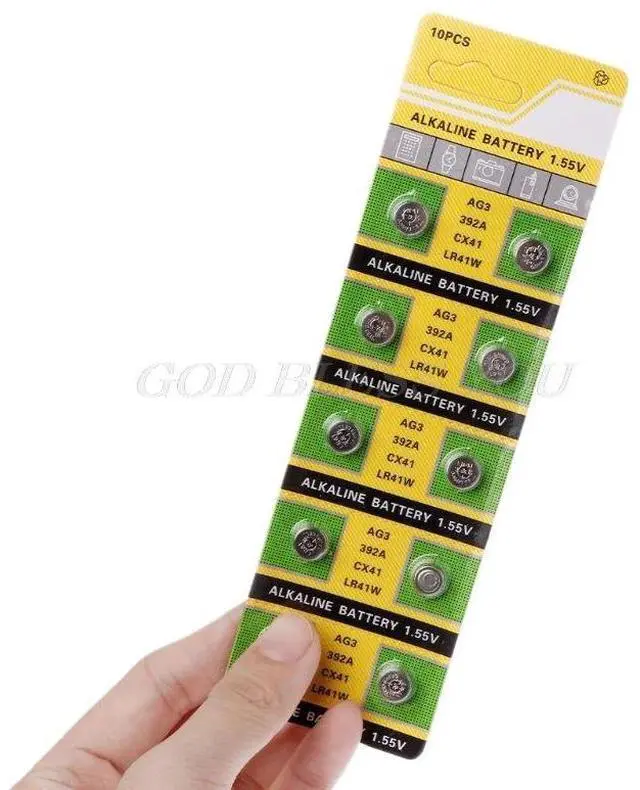 • 10PCS Cell Coin Alkaline Battery AG3 1.55V Button Batteries SR41 192 L736 384 SR41SW CX41 LR41 392 Lamp Chain Finger Light Watch