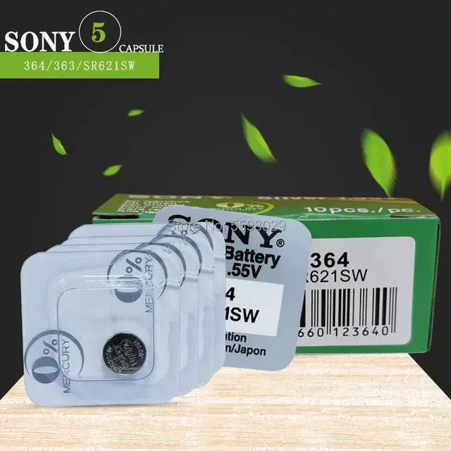 • For Sony 5pcs SR621SW Silver Oxide for Watch AG1 364 164 D364 L621 Button Cell Coin Batteries Single grain packing
