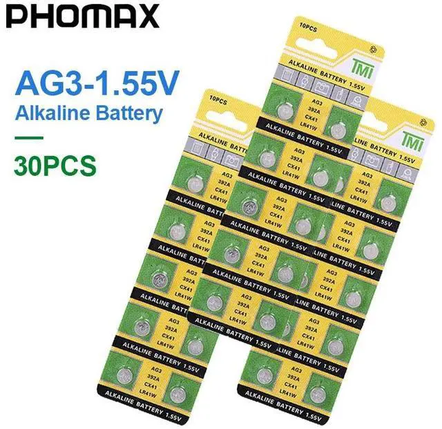 PHOMAX 30pcs/pack button battery AG3 SR41 192 392A L736 LR41 CX41 384 392 alkaline battery watch clock electronic scale battery