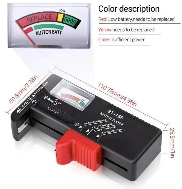 BT-168 Battery Capacity Tester AA/AAA/C/D/9V/1.5V Universal Button Cell Battery Colour Coded Meter Indicate Volt Tester Checker