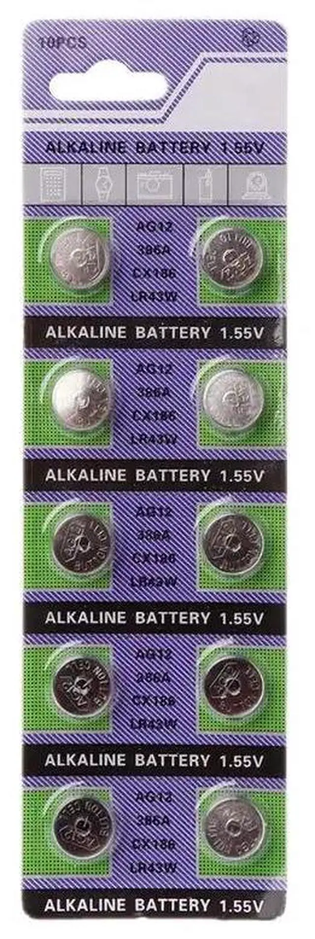 • 10PCS Alkaline Battery AG12 1.5V LR43 386 Button Coin Cell Watch Toys Batteries Control Remote SR43 186 SR1142 LR1142 B85B