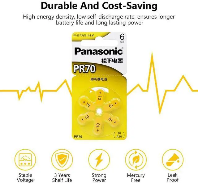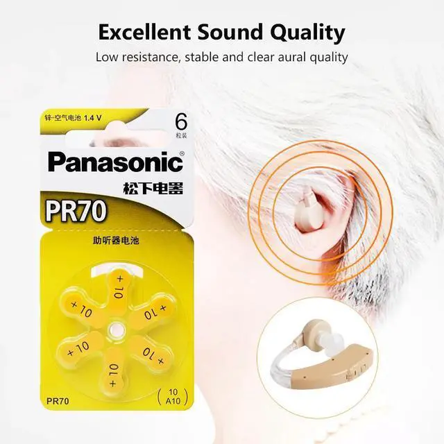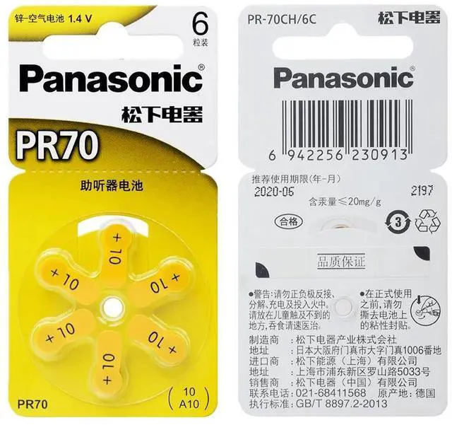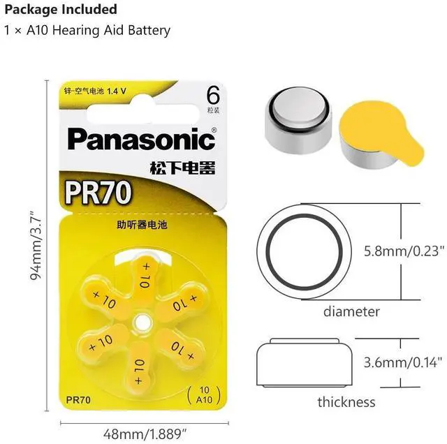 • 6PCS Genuine PR70 Hearing Aid Batteries 5.8MM*3.6MM 10 A10 ZA10 Deaf-aid Cochlear Button Cell Batteries Audiphone
