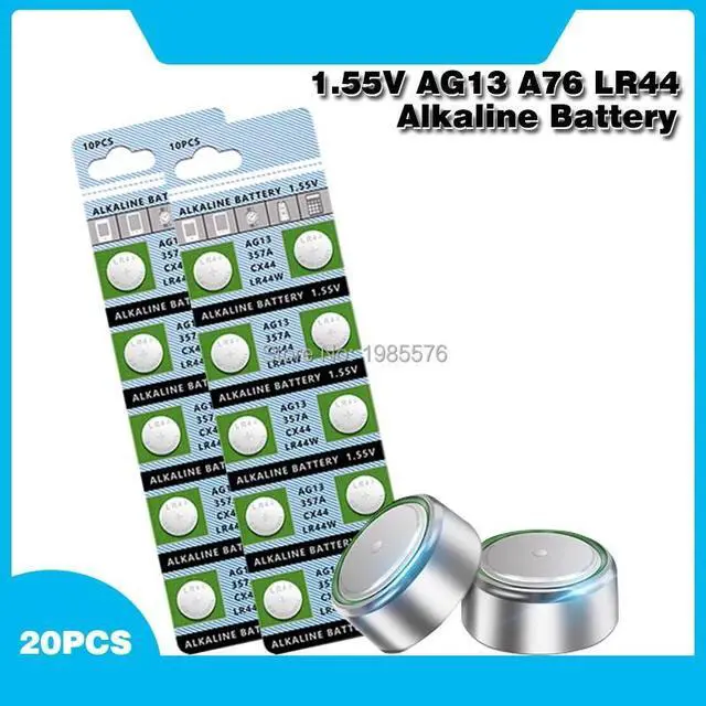 • 20PCS AG13 Button Battery 1.55V Alkaline Coin Cell Batteries LR44 357A S76E G13 for Watch Electronic Remote