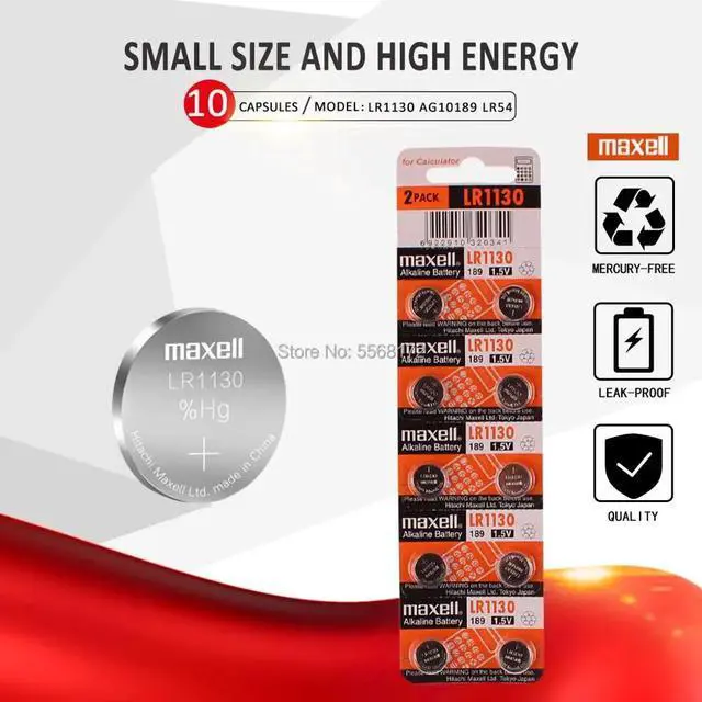 • 10pcs/lot for Maxell 1.5V AG10 LR1130 Coin Cell Battery Batteries LR 1130 Alkaline AG10 389 LR54 SR54 SR1130W 189 LR1130 Button