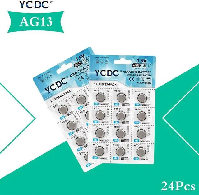 • 24Pcs AG 13 Button Battery 1.5V SR44SW L1154 RW82 RW42 LR44 357 AG13 Coin Cell Batteries for Watch Calculator toys