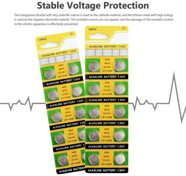 • 30Pcs AG8 Button Batteries For Watch 191 LR55 LR1120 391 SR1120 1.55V Cell Coin Battery For Watch Toys Remote Car Key