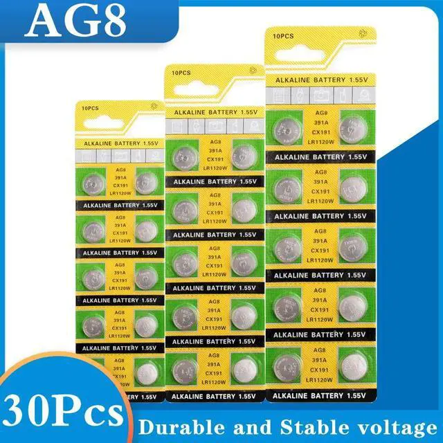 30Pcs AG8 Button Batteries For Watch 191 LR55 LR1120 391 SR1120 1.55V Cell Coin Battery For Watch Toys Remote Car Key