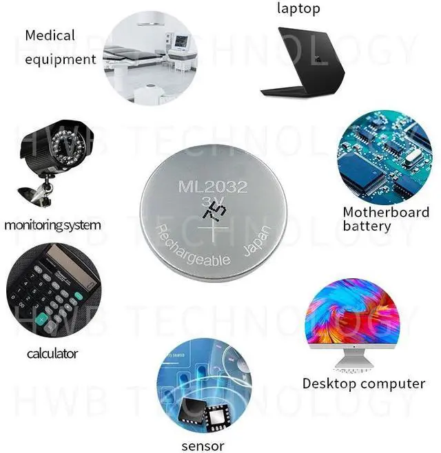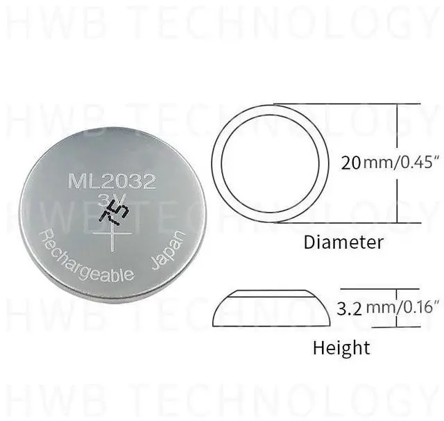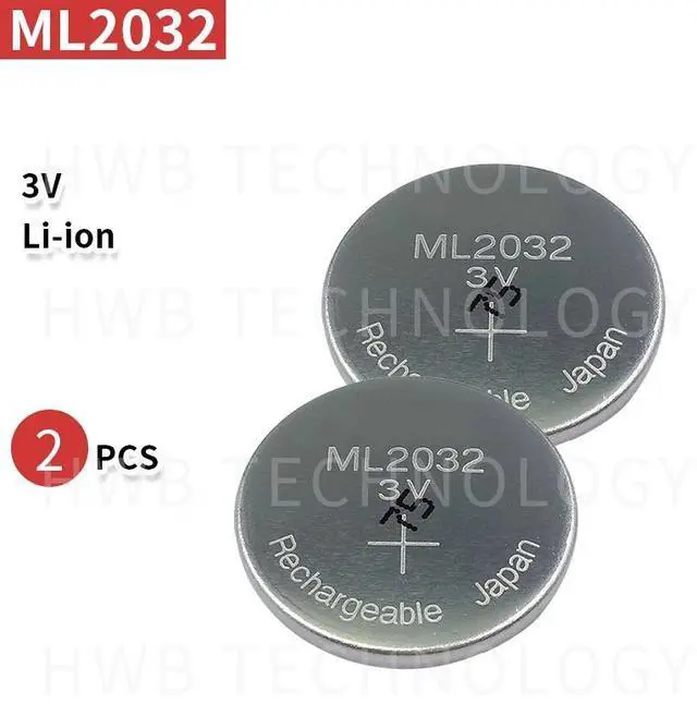 • 2PC ML2032 3V Rechargeable lithium battery button cell button batteries (ML2032)