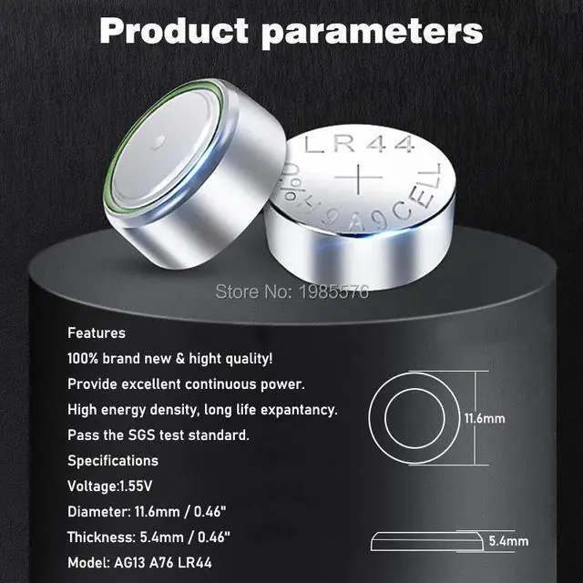 • 30PCS 1.55V AG13 LR44 Alkaline Cell Coin Battery AG 13 LR44W LR1154 SR44 A76 357A 303 357 Button Batteries For Watches Toys