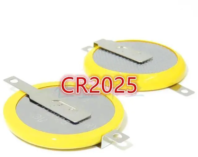 • 10PCS CR2025 2025 3V 180 degree welding foot with hole welding tab button battery