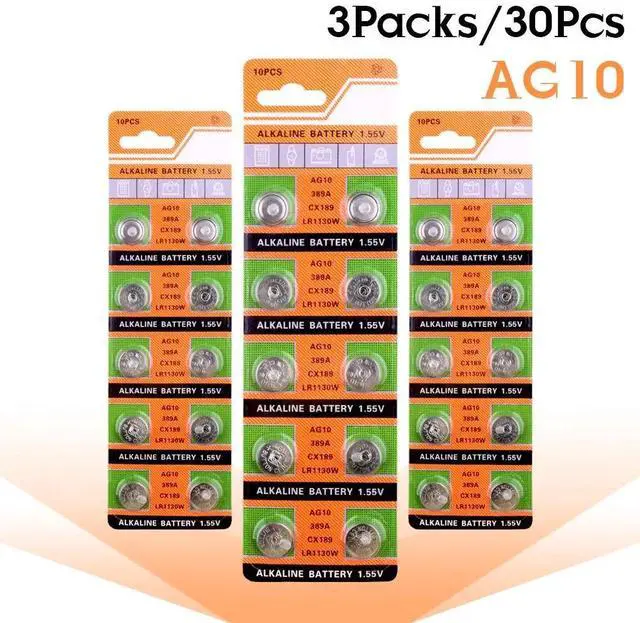 • 30PCS AG10 Alkaline Cell Coin Battery LR54 LR1130V 10GA189 389 390 AG10 G10A SR1130 LR1130 390A D189 Button Battery For Watch