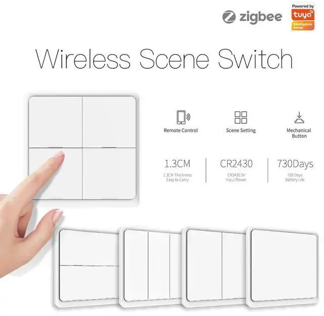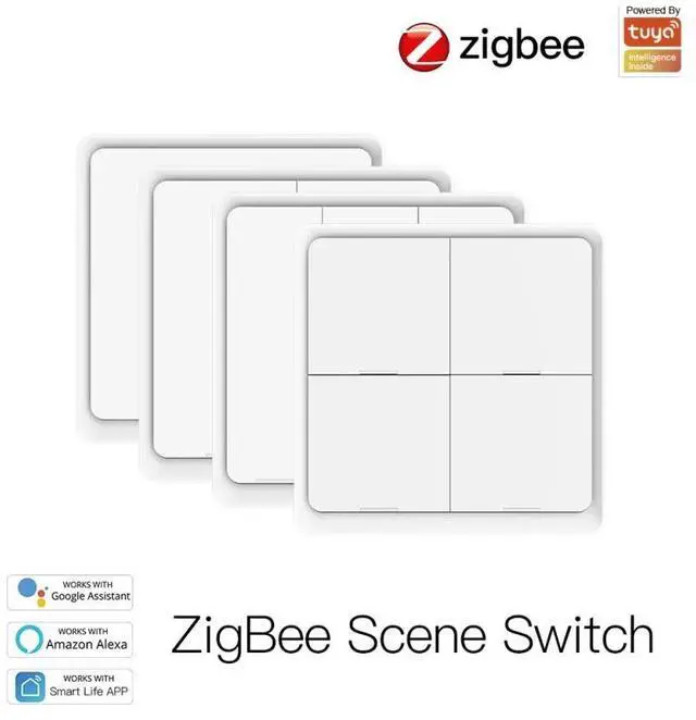 • Tuya ZigBee 4 Gang Wireless 12 Scene Switch Push Button Controller Battery Powered Automation Switch Work With Alexa Google Home