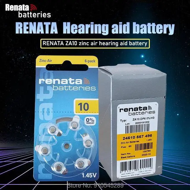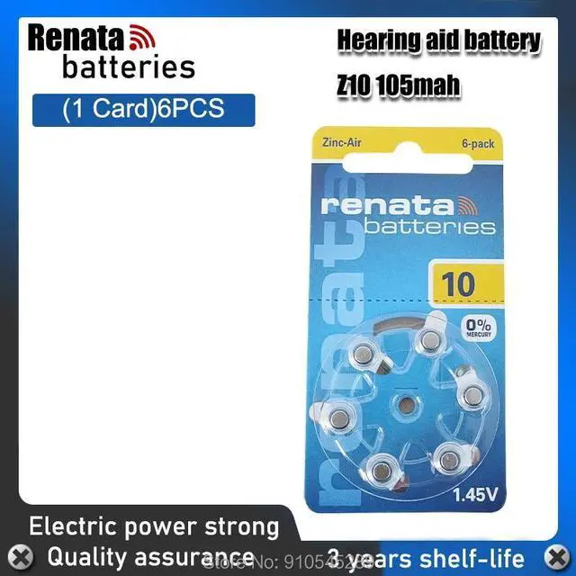 • 1pack(6PCS) RENATA ZA10 PR70 A10 1.45V Advanced Hearing Aid Batteries CIC Ear Care Button Cell Battery