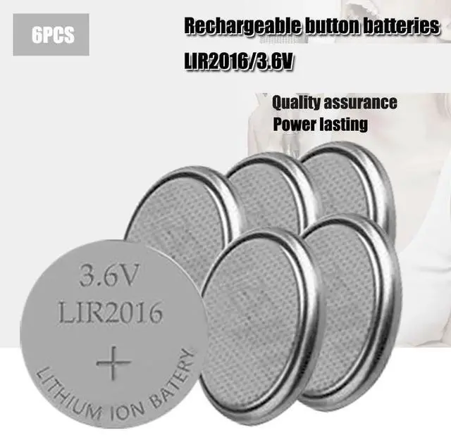 • 6PCS Li-ion Rechargeable Battery LIR2016 3.6V Lithium Button Built-in Coin Cell Batteries Watch Cells LIR 2016 Replaces CR2016