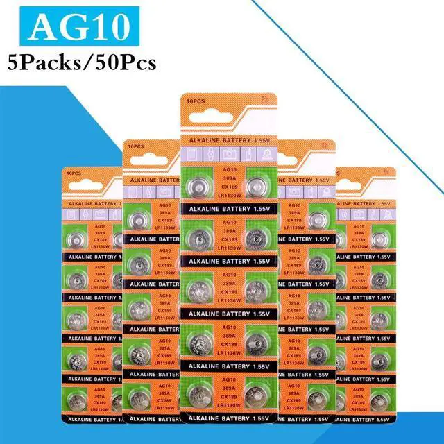 • 50PCS/ 5 Pack AG10 LR1130 389 SR1130 Button Batteries LR54 Cell Coin Alkaline Battery 1.55V SR54 389 189 For Watch Toys Remote