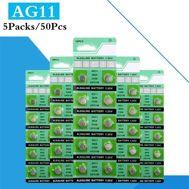 • 50PCS/ 5 Pack AG11 LR721 362 Button Batteries SR721 162 Cell Coin Alkaline Battery 1.55V For Watch Toys Remote