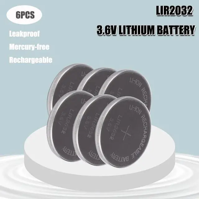 • 6PCS LIR2032 3.6V Button Cells Li-ion Rechargeable Battery LIR 2032 Replaces CR2032, Lithium Coin Cell Batteries