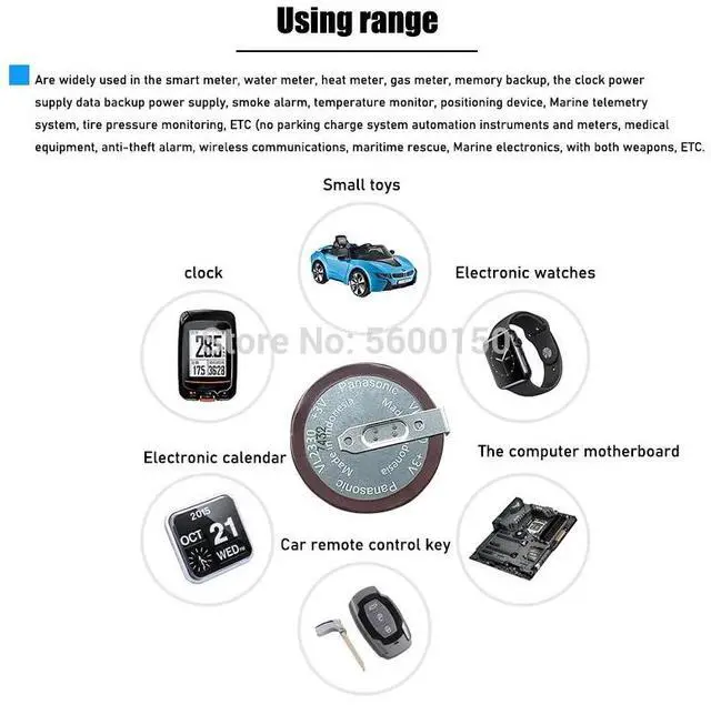 • VL2330 2330 Rechargeable lithium battery coin cell for car key button with 180 degrees pins