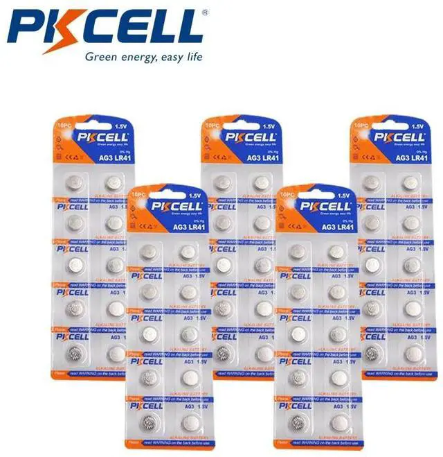 50Pcs/5card PKCELL AG3 1.5V 30mAh Button Batteries LR41 AG3 watch battery SR41W 392 192 192A LR736 for thermometer batteries