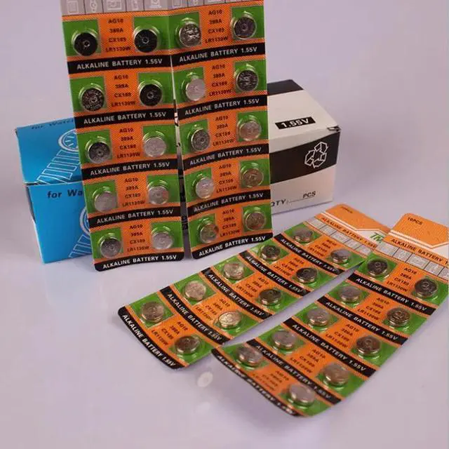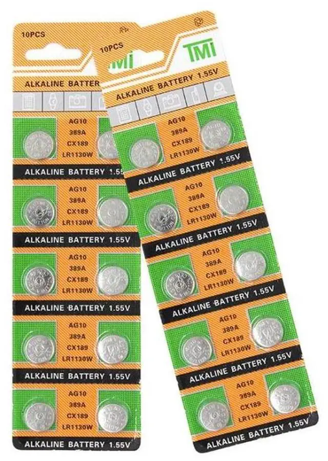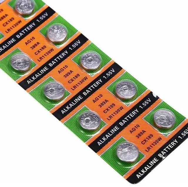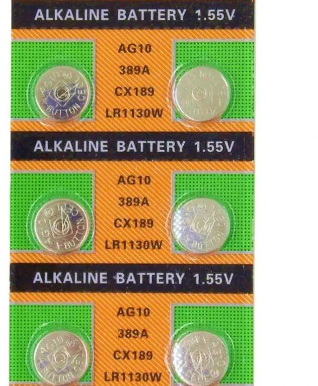 • GTF 200PCS AG10 Alkaline Button Battery LR1130W 389A CX189 Battery For MP3 Players Toys watch 1.55V button batteries