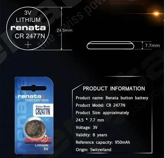 2pack renata lithium Battery CR2477N CR2477 2477 3V For Watch brake light instrumentation car key Button Battery