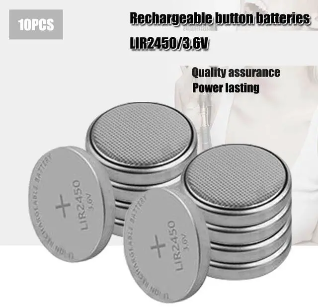 • 10PCS 3.6V LIR2450 LIR 2450 lithium rechargeable battery for remote control toy watch computer motherboard button cell CR2450