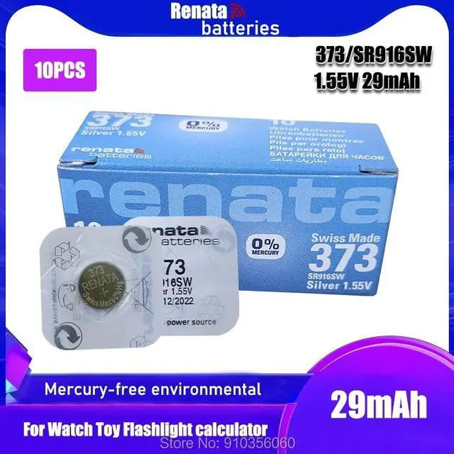 • 10PCS Renata 373 Brand Silver Oxide Watch Battery LONG LASTING SR916SW 916 Swiss Made Button Coin Batteries