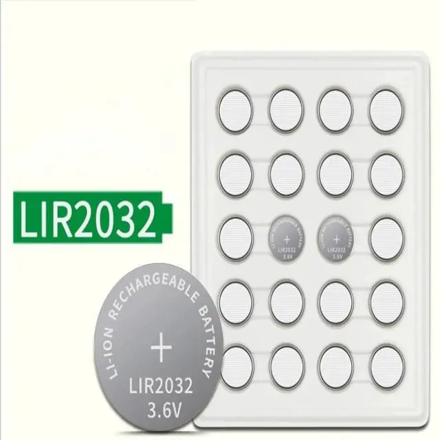• Button Cell Li-ion Rechargeable Battery LIR2032 3.6V 20 Pcs - 2032 Replace CR2032 Coin
