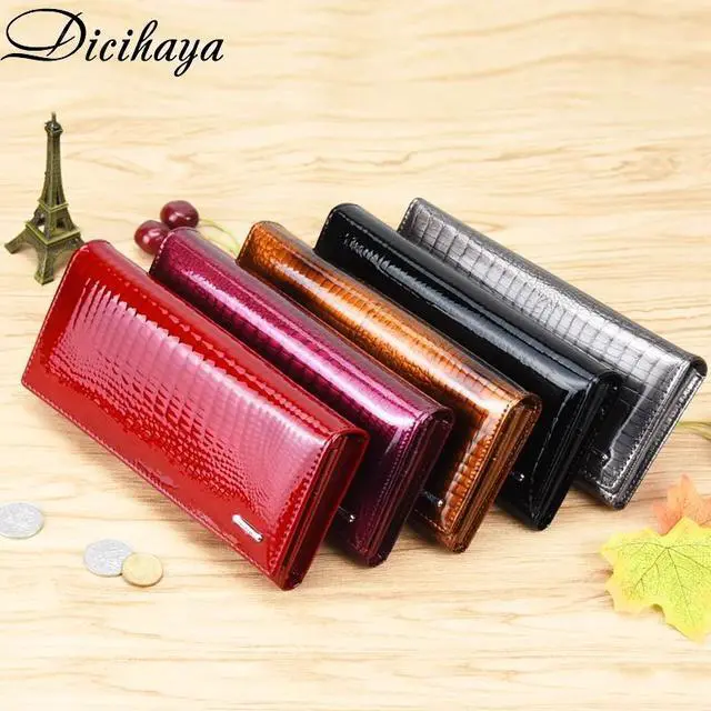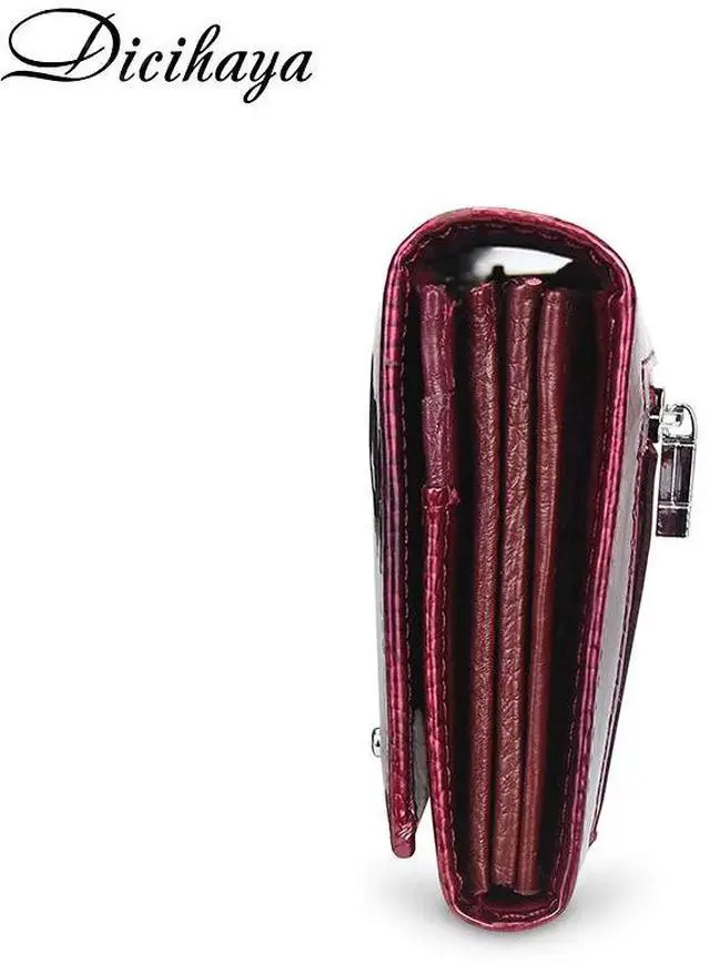 • DICIHAYA Genuine Leather Women's Wallets Fallow Long Ladies Double Zipper Wallet Clutch Bag Design Red Purse Crocodile Purses