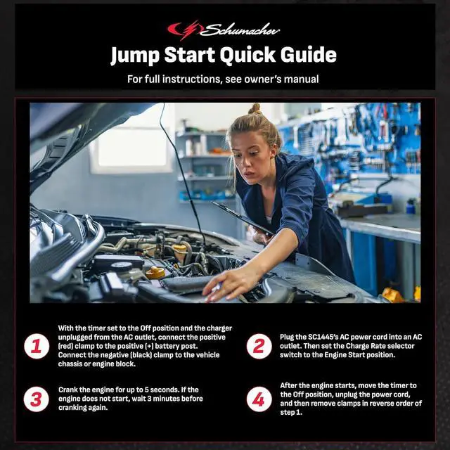Works With Common Battery Types: The Schumacher Electric SC1445 Manual Timer-Controlled Wheeled Battery Charger and Jump Starter is compatible with 6-volt and 12-volt standard, AGM, gel, and deep-cycle batteries