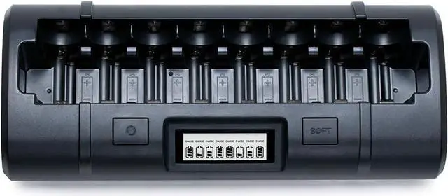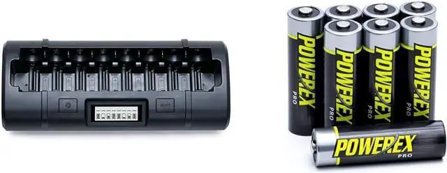 The Powerex MH-C808M Ultimate Professional Charger for 8 AA / AAA / C / D NiMH or NiCD Batteries charges up to 8 nickel-metal hydride (NiMH) or nickel-cadmium (NiCD) batteries of AA, AAA, C or D size. Its Powerex microprocessor with 0.001V resolution delivers just the right amount of current to each battery, ensuring that it does not get over- or undercharged. The charger delivers 2000mA of current for AA, C and D batteries, and 700mA for AAA batteries.