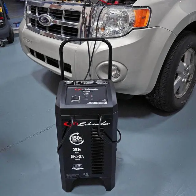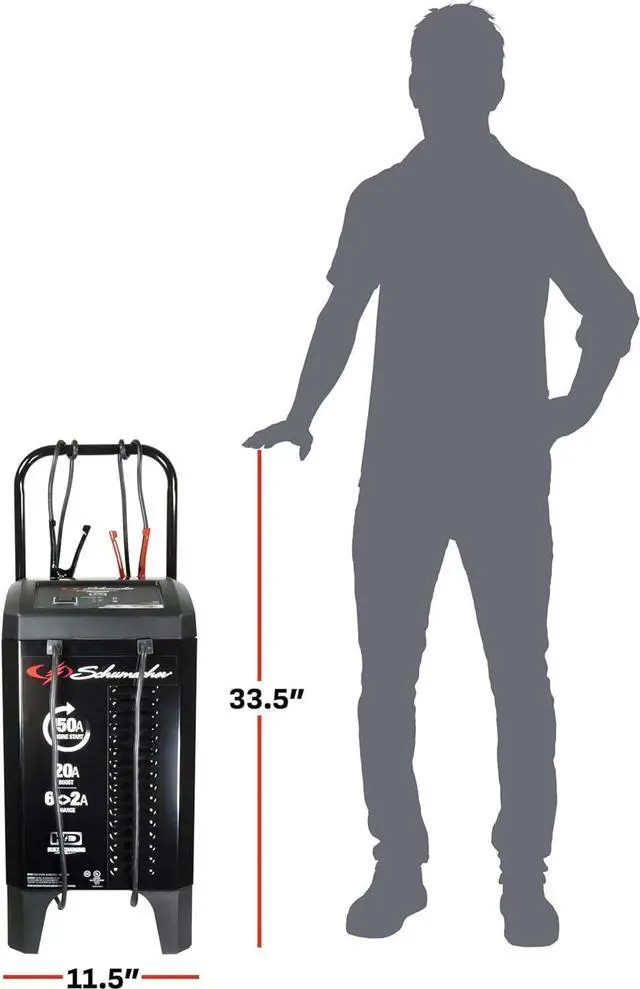 2-amp charge/maintain capability, ensuring efficient charging every single time. Need to revive a deeply discharged battery in a hurry& The 20-amp boost mode is here to bring it back to life quickly. Equipped with color-coded clamps, LED indicators, and convenient compact wheels for easy storage and portability, this charger is as user-friendly as it gets. Choose the Schumacher SC1364 for all your heavy-duty charging needs and experience reliable power that can handle even the toughest engines with ease. En español (ES): Prepárese para arrancar incluso los motores más grandes con el cargador y arrancador de baterías totalmente automático con ruedas Schumacher de 150 A y 12 V (SC1364). Cuando se trata de carga para trabajo pesado, este cargador es la solución definitiva para los mecánicos aficionados en el cuidado de la batería del vehículo. Diseñado específicamente para vehículos utilitarios deportivos, camiones y otros motores grandes, el SC1364 ofrece un rendimiento excepcional y una potencia de carga confiable. De Schumacher Electric, marca de confianza en soluciones de carga, este cargador cuenta con una potente función de arranque de motores de 150 A y una versátil capacidad de carga/mantenimiento de 6 A/2 A, que garantiza una carga eficiente en todo momento. ¿Necesita revivir una batería muy descargada de manera urgente& El modo de refuerzo de 20 A está aquí para devolverle la vida rápidamente. Equipado con pinzas codificadas por colores, indicadores LED y cómodas ruedas compactas para facilitar su almacenamiento y transporte, este cargador es muy fácil de usar. Elija el Schumacher SC1364 para todas sus necesidades de carga de trabajo pesado y experimente una potencia confiable que puede manejar incluso los motores más exigentes con facilidad.