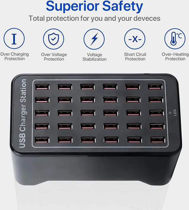 [Smart Charging Recognition] - The family-sized desktop USB fast charger can charge 30 devices at the same time. More efficient, using new technology, each USB interface is independent of each other and does not interfere with each other. Overcharging protects safe charging and extends the phone usage time to 2 years.